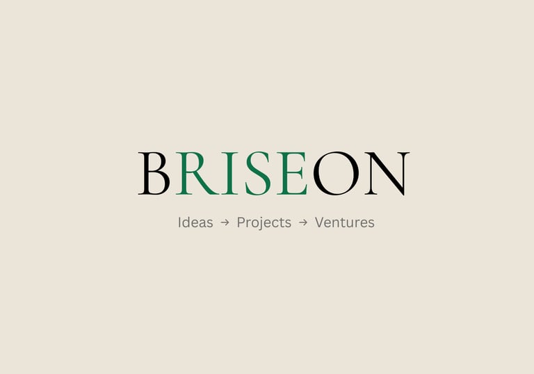 The section operates through a progressive model of Ideas → Projects → Ventures, while also functioning as a brand-building studio for selected initiatives in development. It is a space where early concepts are shaped into clearer project forms, refined into stronger identities, and prepared for future independent growth. BRISEON is designed to support ideas that begin with creativity, but require strategy, positioning, and disciplined development to become meaningful ventures.